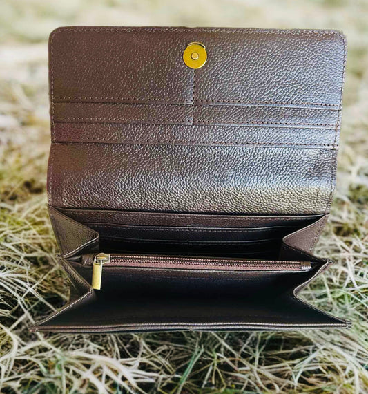 Genuine Cowhide Clutch Purse - Magnetic closure