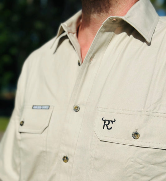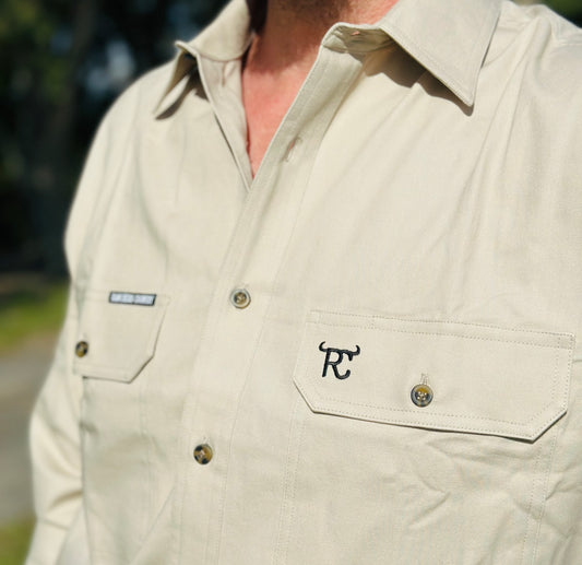 RC "Sahara" Men's Long Sleeve Full Button Work Shirt- Stone/Tan