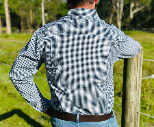 RC "Ranch" Men's Long Sleeve Full Button Work Shirt- Navy Check